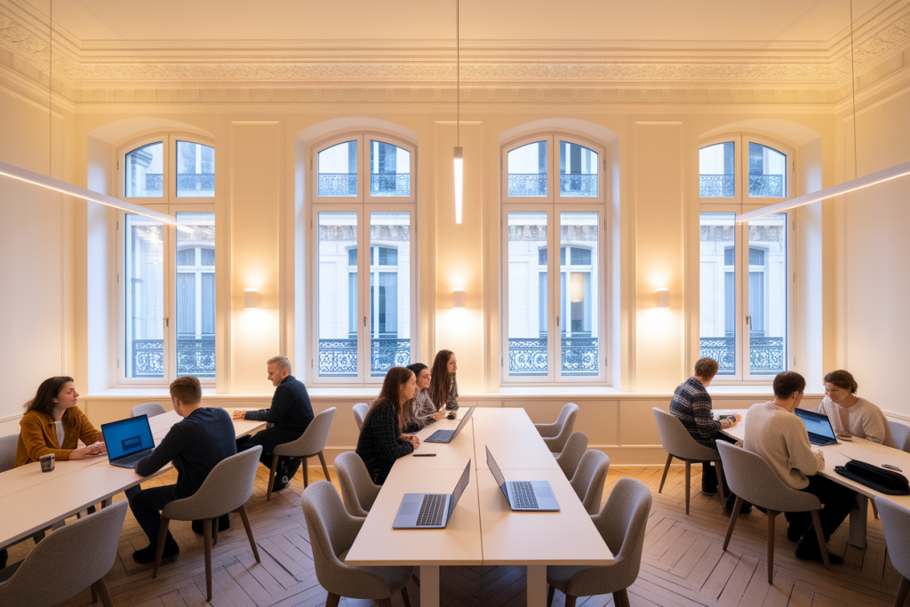 Pour vos déplacements nationaux, la Gare de Lyon centralise les TGV vers le Sud-Est, l’Italie, et la Suisse. Un couloir direct relie certains espaces de coworking aux quais, particulièrement pratique pour les consultants itinérants.
